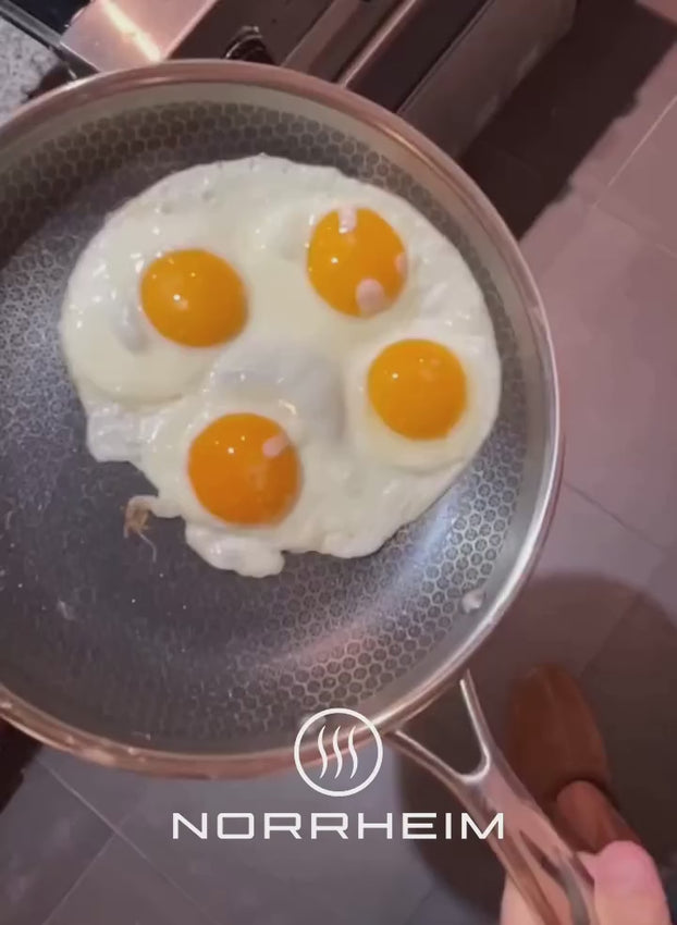 Norrsteinâą kombinerar slitstarkt rostfritt stĂ„l med en hybridbelĂ€ggning som ger naturlig non-stick-effekt â helt utan teflon. Den fungerar pĂ„ alla typer av hĂ€llar, tĂ„l ugn, och du behöver inte oroa dig för repor frĂ„n metallredskap.